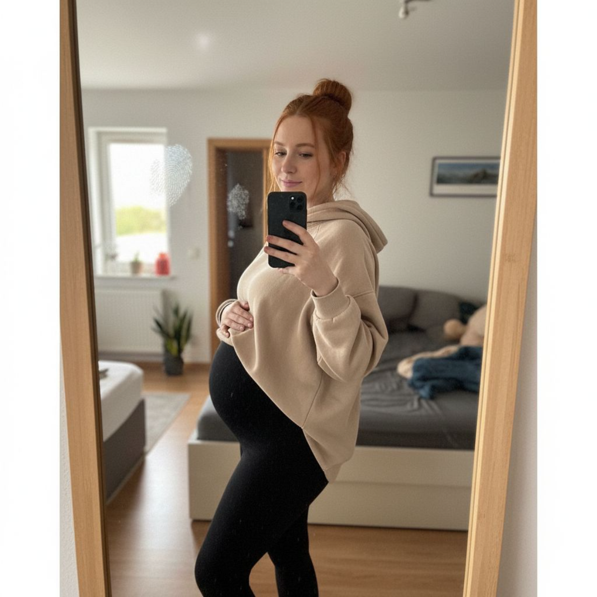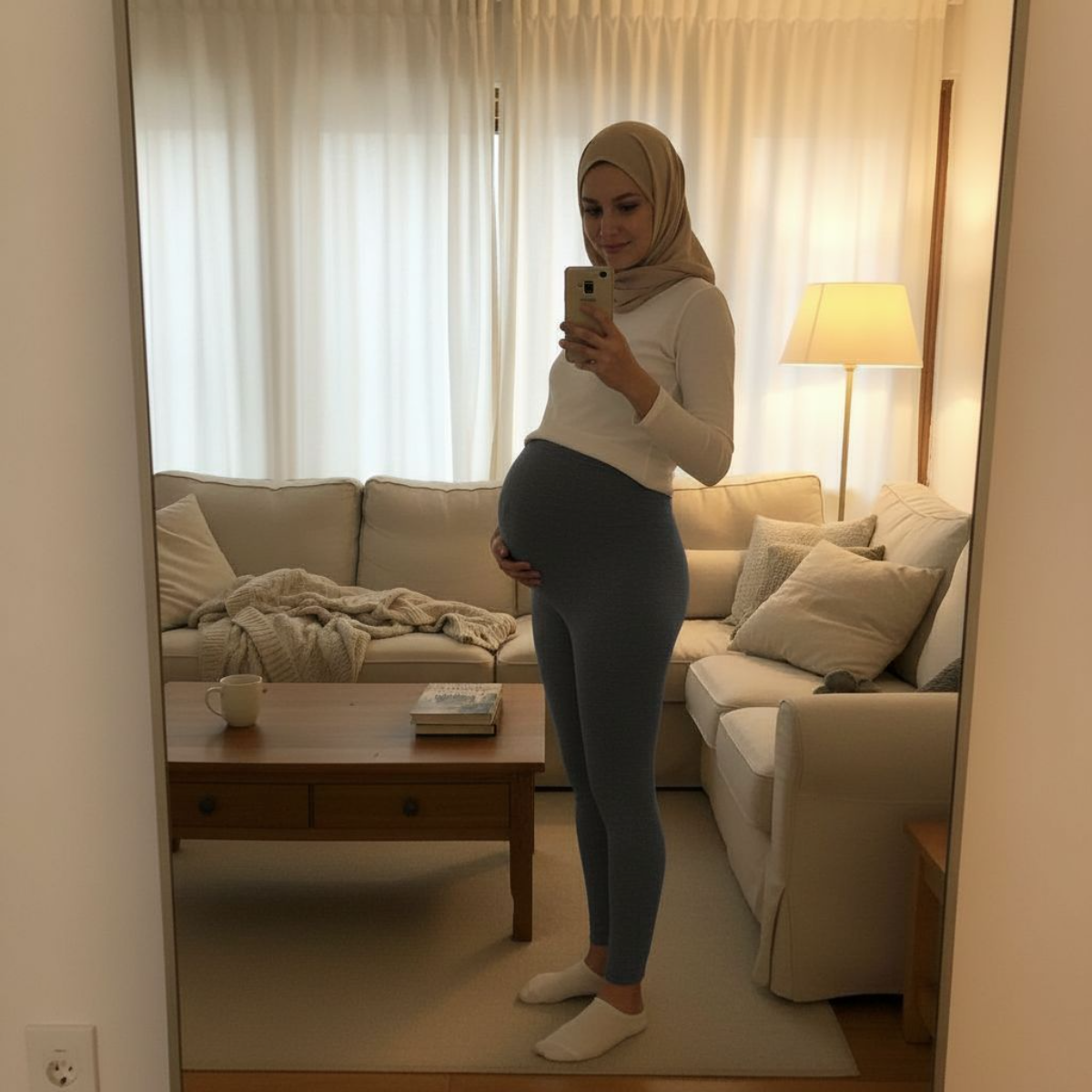 The soft, brushed inner lining keeps you comfortably warm on colder days, while the elastic high waistband gently supports your growing bump — without pressure or tightness.
