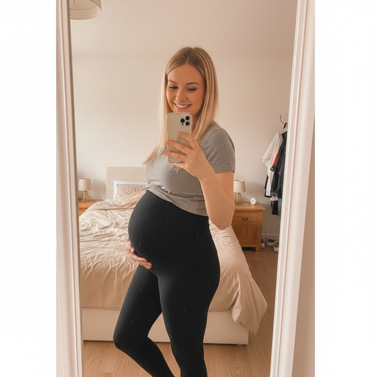 BumpHeaven’s high-waist leggings adapt beautifully to your growing bump – from the early months right through to the final weeks.